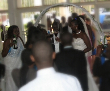 drinking under archway (edited)-761502066 Published December 14, 2012 at 356 × 295 in Cultural Learning: Weddings Holding the glass of red “champagne” to the others mouth to drink made me nervous with all that white – but they didn’t spill!